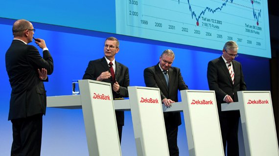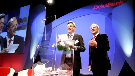 Die DekaBank ist mit einem Anlagevermögen von ca. 150 Milliarden Euro der zentrale Asset Manager der Sparkassen-Finanzgruppe. Einmal im Jahr lädt die DekaBank die Vorstände aller deutscher Sparkassen und weitere Partner aus dem Sparkassenverbund zu einem zweitägigen Kongress ein. Im Mittelpunkt stehen Verbund- und Finanzmarktthemen sowie Fonds- und Vertriebsstrategien. Stefan Schulze-Hausmann berät das Deka-Kongressteam seit 2000 redaktionell und moderierte die Veranstaltungen seit dem Jahr 2000.